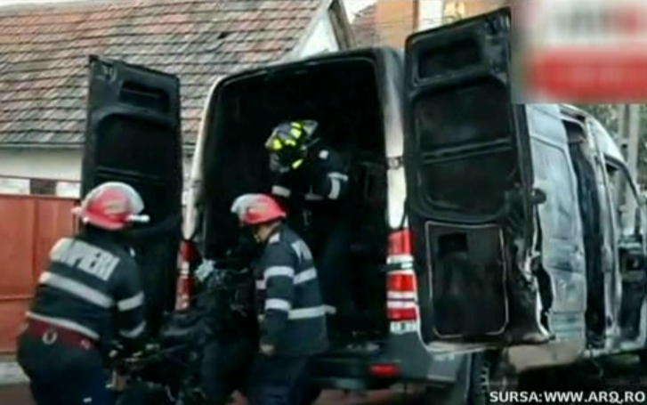 2 din 3 | Un microbuz a ars ca o torta in numai cateva minute din cauza unei motociclete! Ce s-a intamplat