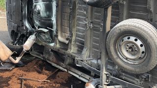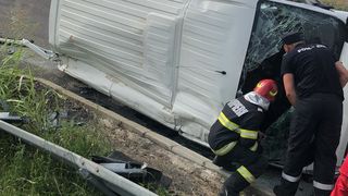 2 din 3 | Un microbuz cu mai mulți pasageri s-a răsturnat pe Autostrada Soarelui. Elicopterul SMURD, chemat de urgență