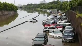 In imagini se poate vedea cum masina in care se afla o femeie mai are foarte putin pana sa fie cu totul inghitita de apa. Trei barbati aflati intr-o barca incearca sa faca tot posibilul pentru a o scoate de acolo inainte de a fi prea tarziu.