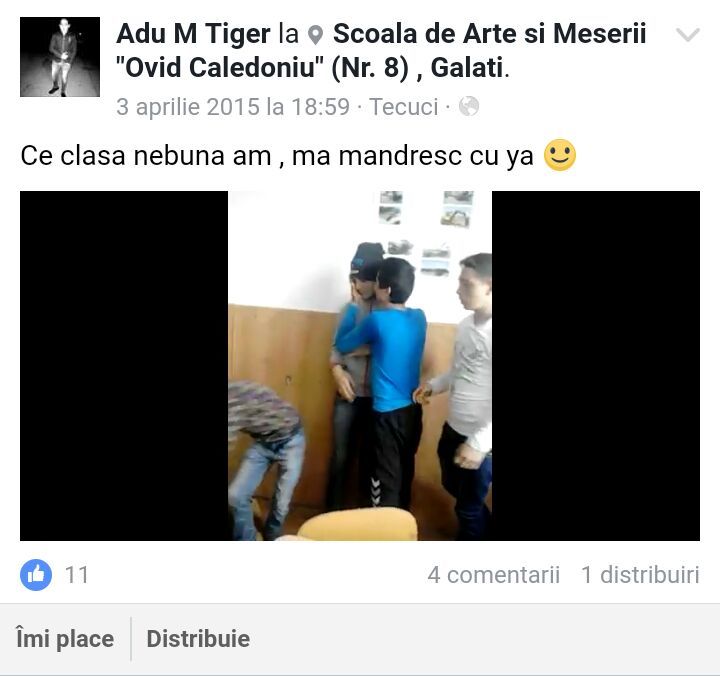Un filmulet postat pe Facebook arata cum decurge o pauza pentru elevii de la Scoala de Arte si Meserii "Ovid Caledoniu" din Tecuci, judetul Galati.