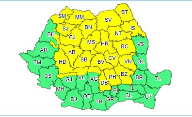 Transilvania, Maramureş, Moldova și nordul Munteniei sub avertizare de cod galben