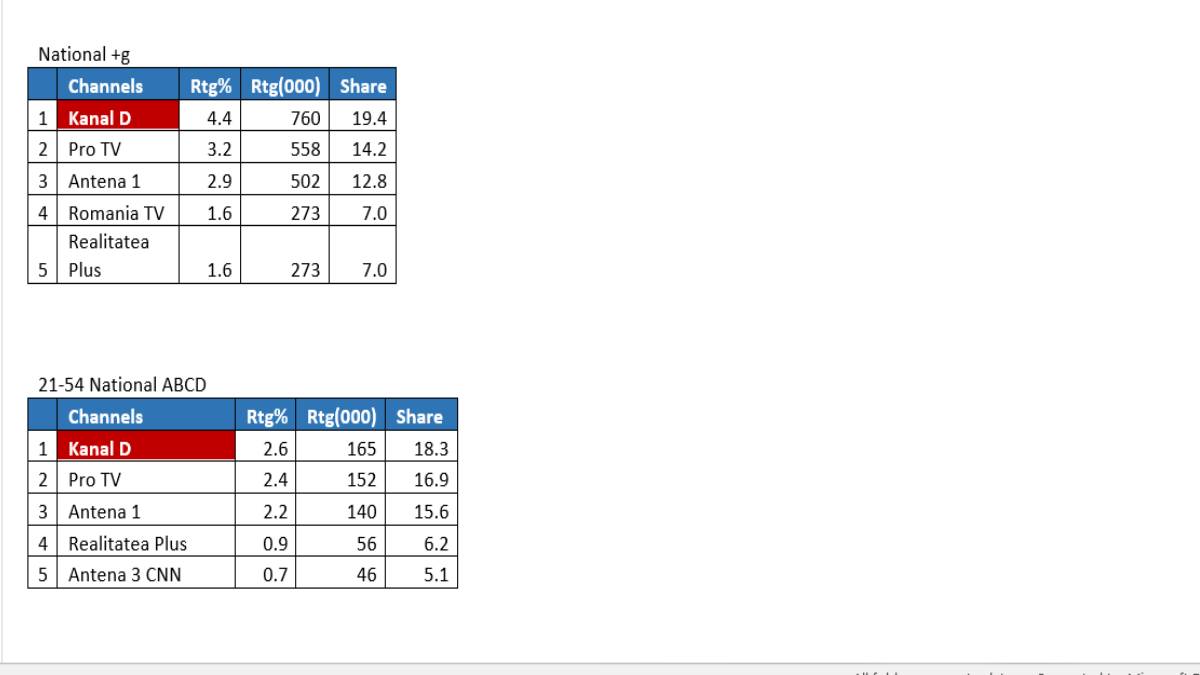 La nivel Național, emisiunea a înregistrat aproape 20% cotă de piață (19,4%) și 4,4% Rating, iar pe targetul Comercial, emisiunea a cumulat o cotă de piață de 18,3% și 2,6% Rating.