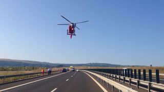 4 din 4 | Un politist a fost spulberat pe A1 intre Sibiu si Deva - Un TIR l-a izbit de parapet - Omul legii se afla in stare grava