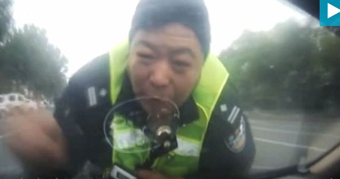 In urma cu cateva zile, in Xuzhou, China, un politist a incercat sa opreasca un sofer in trafic, dar a fost pur si simplu luat pe sus. Barbatul care se afla la volan era sub influenta alcoolului si in loc sa opreasca a accelerat. Politistul reuseste sa se prinda de stergatoare si se mentine pe capota.