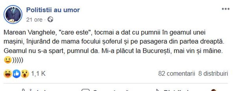 Marian Vanghelie ar fi avut un acces de furie în ziua în care a avut loc congresul PSD. Afirmația aparține lui Dan Georgescu, polițist din Mangalia și administrator al paginii de Facebook ”Polițistii au umor”.