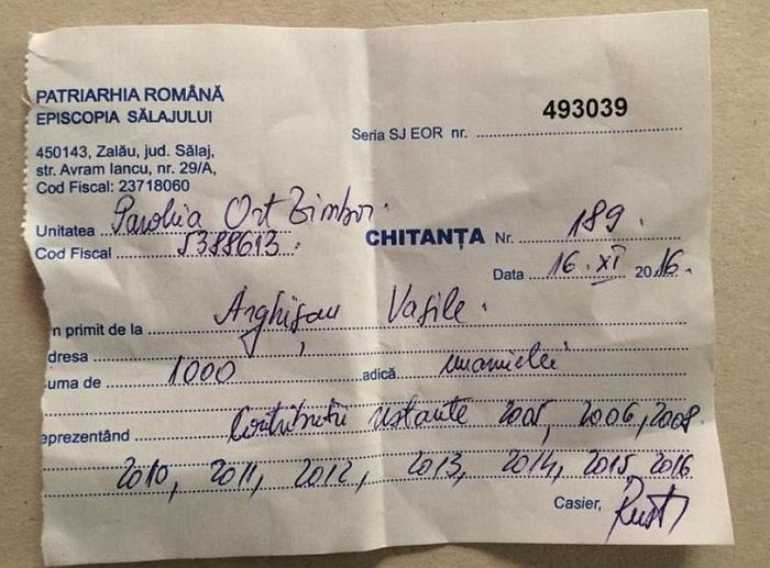 precizarea ca oficierea serviciilor religioase in Biserica nu este conditionata de obligativitati pecuniare din partea solicitantului crestin.Totusi, benevol, prin hotararea Consiliului Parohial si aprobarea Adunarii Parohiale, avand in considerare realitatile sociale particulare ale fiecarei comunitati parohiale, pot fi incasate in cuantumul fixat, sume pentru serviciile religioase stabilite de unitatea de cult prin organismele abilitate, sume ce sunt folosite in intretinerea lacasurilor de cult, plata utilitatilor, activitati culturale si filantropice, precum si pentru completarea salariilor personalului deservent.Regretand