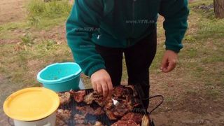Marius Marcuta apare in fotografii imbracat in haine civile, insa cu toca preoteaca pe cap (potcap), in timp ce intoarce mai multe bucati de carne pe gratar. In unele poze sunt suprinsi si cativa tineri, cei care, probabil, l-au si fotografiat.