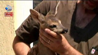 Un puiut de caprioara a topit sufletele oamenilor. O femeie din Galati l-a gasit la marginea orasului si l-a salvat pe micut. Acum bea lapte din biberon si e extrem de fericit