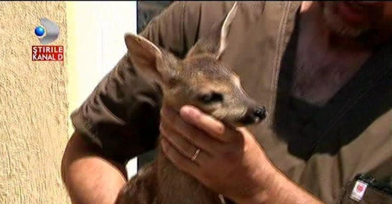 Puiul de caprioara a fost gasit intr-un luminis. Femeia care l-a zarit ratacind, speriat, nu a stat pe ganduri si l-a luat imediat in brate. A mers pana la cel mai apropiat post de Politie si impreuna cu oamenii legii l-a adus la gradina zoologica.