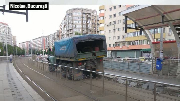 Un camion care apartine Regiei Autonome de Transport Bucuresti isi face loc pe sina de tramvai, undeva in zona Obor, reusind sa distruga practic tot acostamentul. Latimea camionului fiind mult prea mare, soferul a fost nevoit sa urce cu autoturismul si pe refugiul de tramvai, iar bordurile au cedat pe toata zona pe care acesta a mers asa.