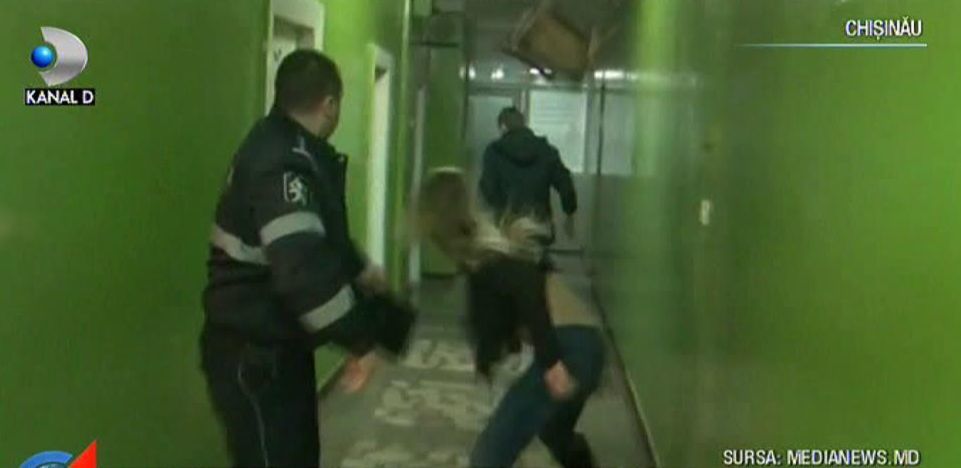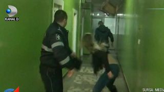 Una dintre fete a devenit recalcitranta. A inceput sa injure politistii si sa arunce cu scaune in oamenii legii. Nu s-a oprit aici. I-a smuls din mana micorofonul reporterului. Cand acesta a incercat sa il recupereze l-a muscat de mana.
