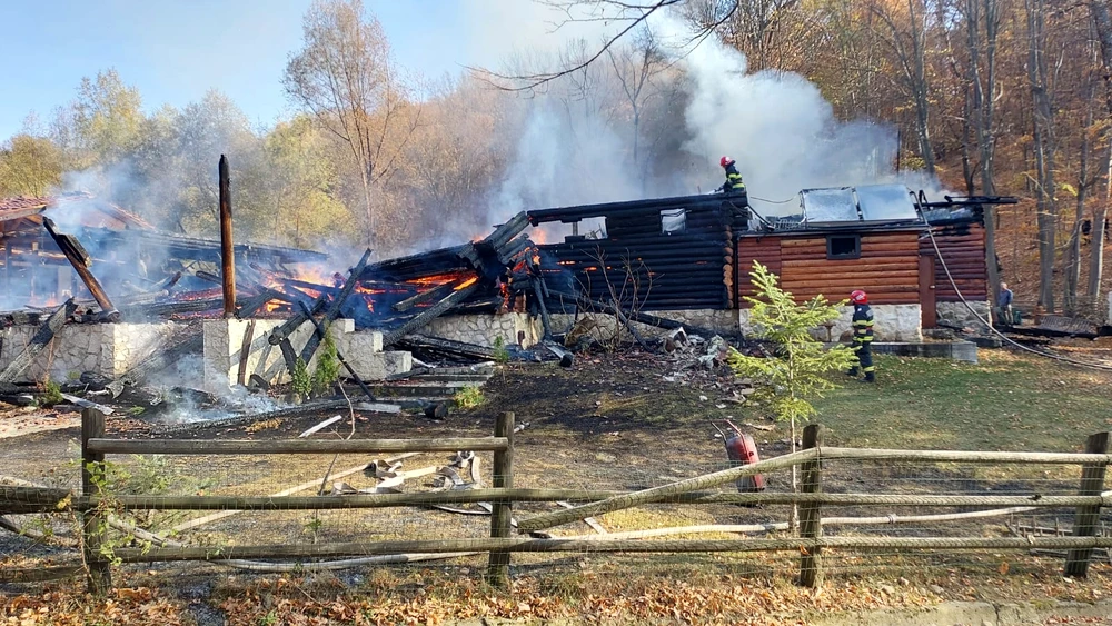 Un incendiu violent a mistuit un restaurant și o cabană din localitatea Izvoranu din Buzău.
