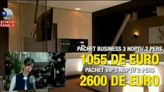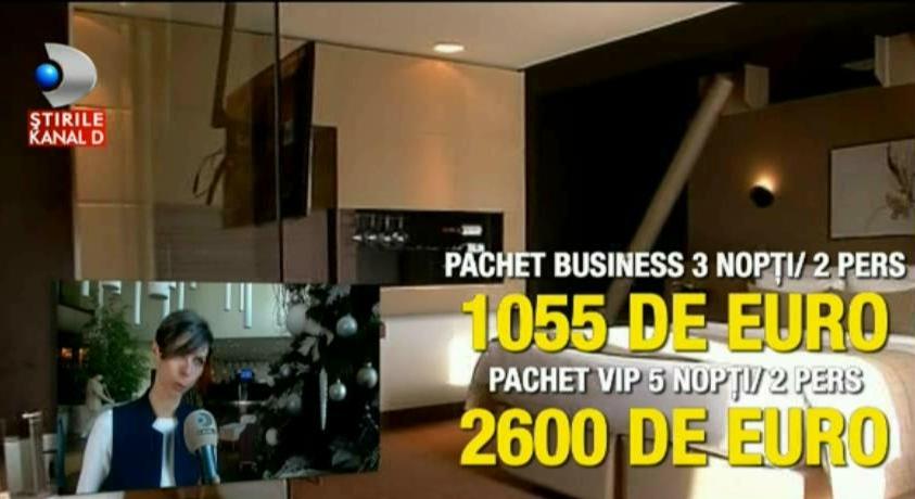Ioana Dobrescu- PR hotel: „pachetele pentru camerele business, pentru doua persoane incep de la tariful de 1055 de euro pentru un sejur de 3 nopti, atingand plafonul tarifar de 2600 de euro daca discutam de camera lifestyle VIP, tot un sejur dublu, de cinci nopti”.