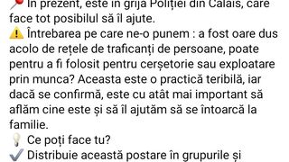 "Încă nu știm cum a ajuns într-o asemenea situație, fără bagaje, acte sau telefon, dar în aceste momente, verisoara lui a luat legătura cu firma de transport și este în proces de contactare a Poliției din Calais pentru a-l recupera", a scris administratora grupului de Facebook.