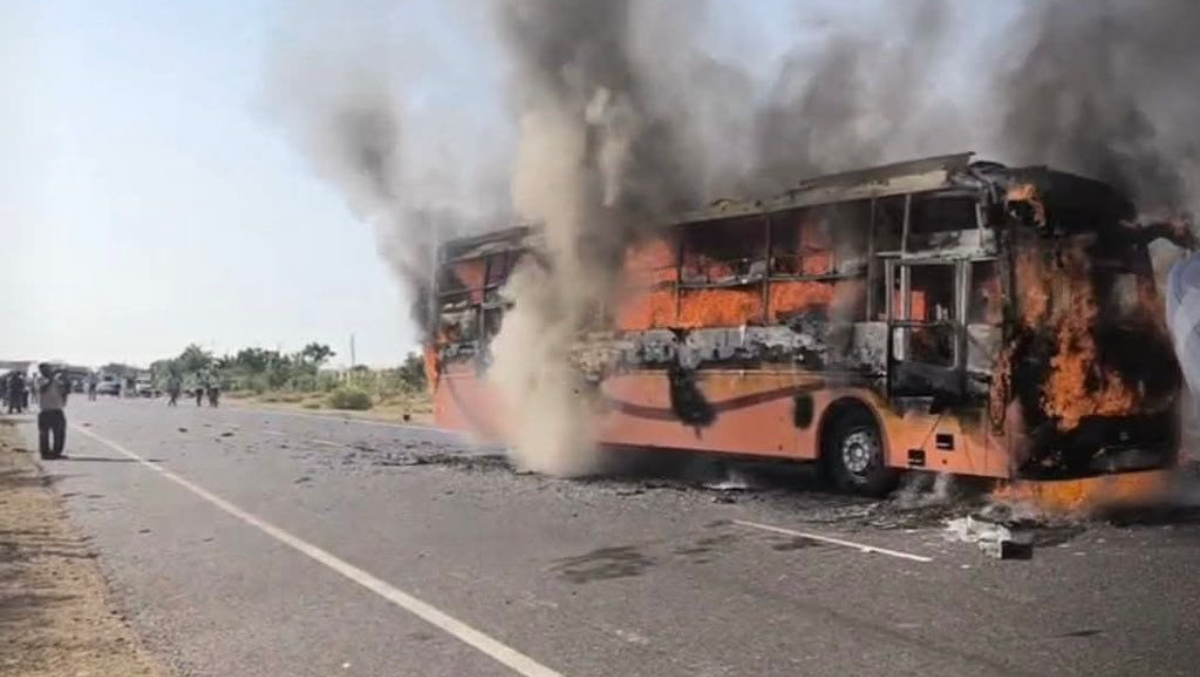 जैसलमेर के पास एक भीषण सड़क दुर्घटना में जोधपुर जा रही एक निजी बस में शॉर्ट सर्किट से आग लग गई, जिसमें 20 यात्रियों की मौत हो गई और 16 घायल हो गए। आग लगने से बस का दरवाज़ा जाम हो गया, जिससे कई यात्री बाहर नहीं निकल पाए और जिंदा जल गए। #Rajasthan #Jaisalmer #BusAccident #Fire pic.twitter.com/b1CM0vAiYI