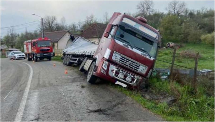 Accident pe un drum din Bistrița-Năsăud, după ce un TIR încărcat cu bere s-a răsturnat, vineri de dimineață, pe șosea. Oamenii legii au identificat șoferul, un bărbat în vârstă de 43 de ani, care se afla sub influența alcoolului.