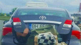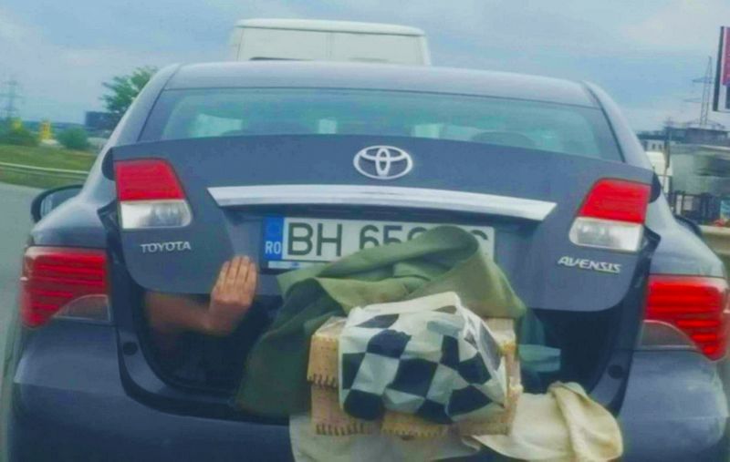 Pentru ca transporta in portbagaj obiecte mult prea mari, soferul din imagini a folosit pe post de incuietoare propriul pasager.