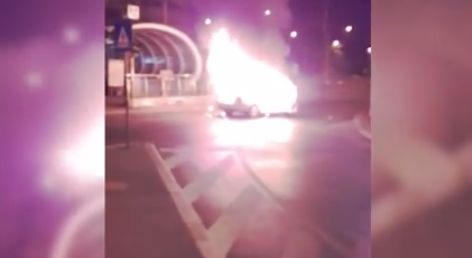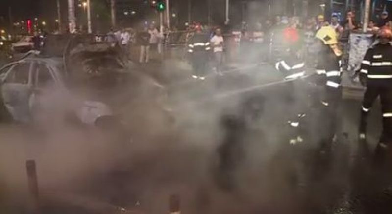 2 din 3 | Un sofer de 22 de ani din Capitala s-a ales cu masina facuta scrum, dupa ce a lovit un alt autoturism. Imediat dupa impact, masina a fost cuprinsa de flacari