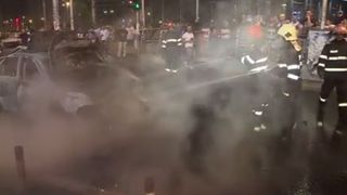1 din 3 | Un sofer de 22 de ani din Capitala s-a ales cu masina facuta scrum, dupa ce a lovit un alt autoturism. Imediat dupa impact, masina a fost cuprinsa de flacari