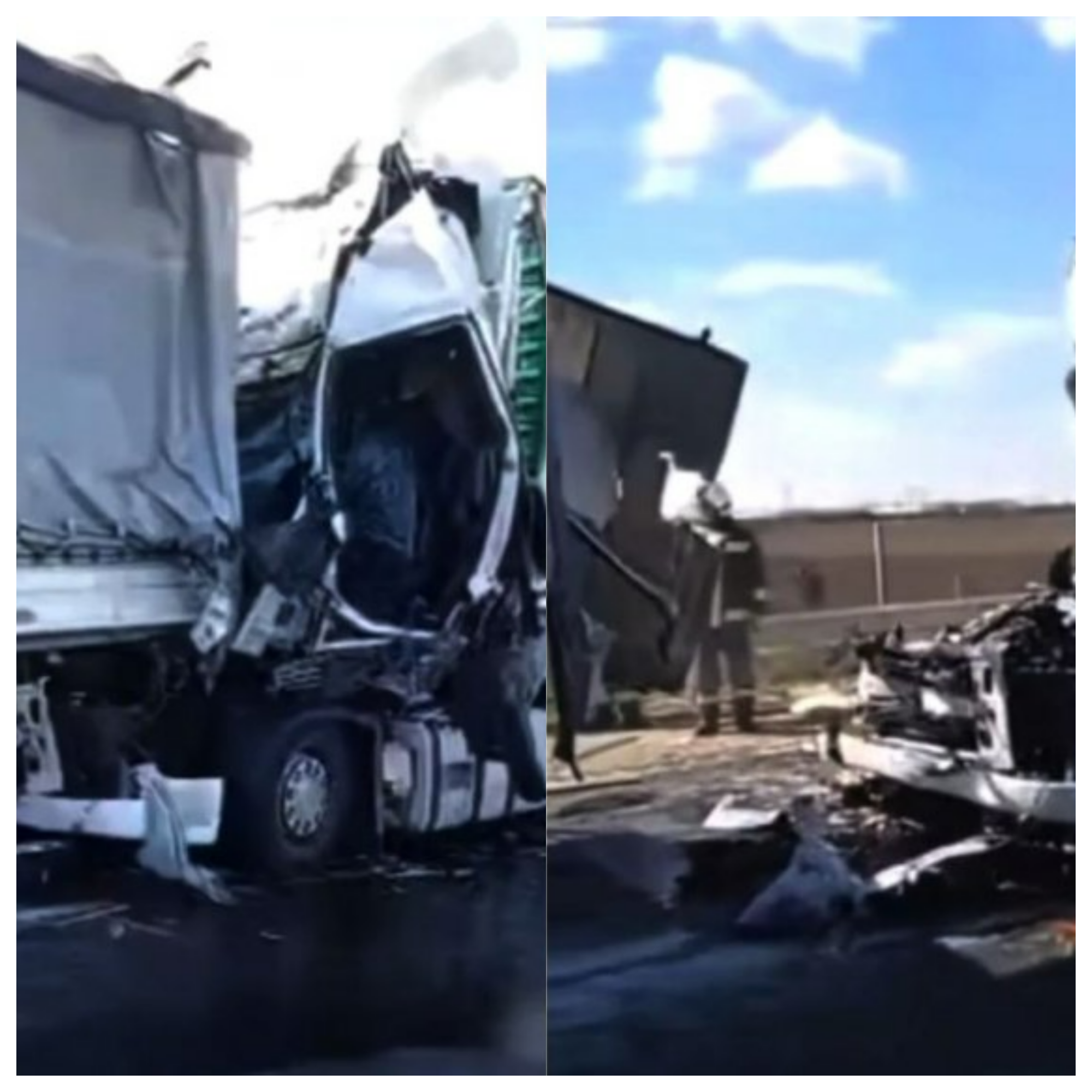 Din motive încă necunoscute, un alt şofer care conducea un TIR înmatriculat în România nu a observat camionul oprit şi a intrat cu viteză maximă în remorca acestuia.