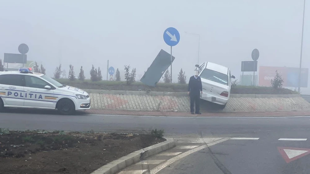 Un alt accident a avut loc în Constanța. Un șofer care a intrat pe A4 s-a urcat peste un sens giratoriu.