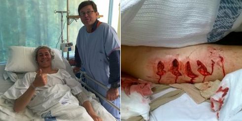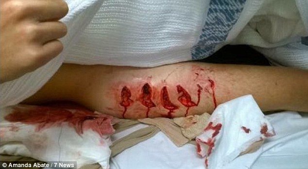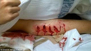 O jurnalista de la 7 News a publicat pe contul ei de Twiiter cateva imagini cu tanarul muscat de rechin. Imaginile sunt cu un mare impact emotional.