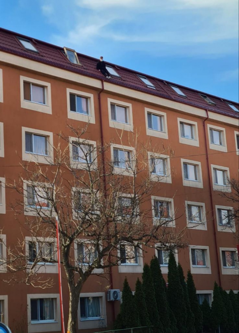 Timp de trei ore tânărul a stat pe acoperişul imobilului.