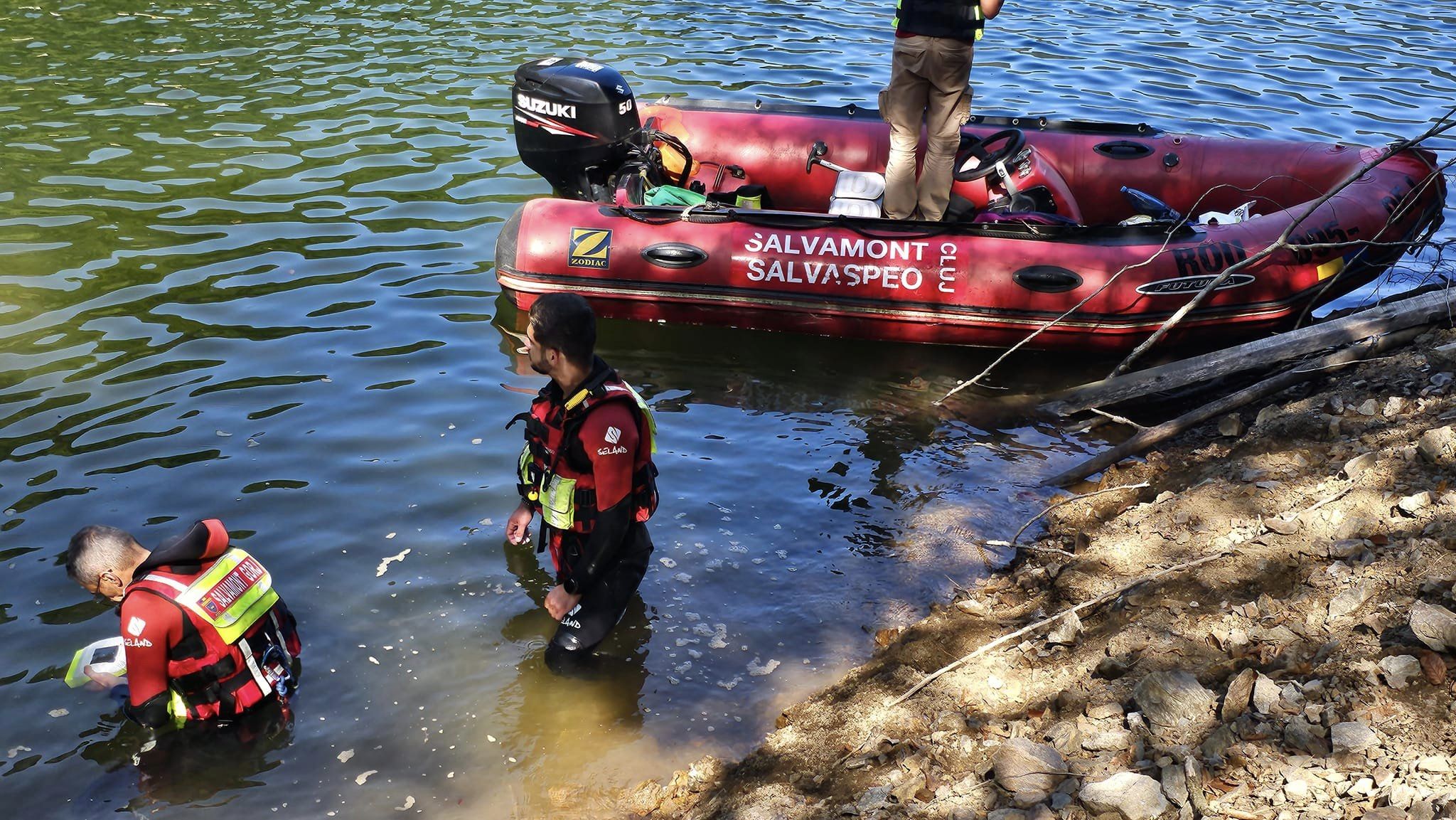 „Acţiune în derulare a salvatorilor acvatici şi subacvatici din cadrul Serviciilor Salvamont-Salvaspeo Cluj şi Gorj pentru recuperarea unei persoane înecate ieri în lacul Tarniţa.