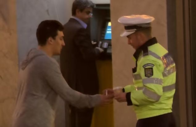 Un tanar din Bucuresti a facut un gest deosebit pentru politistii de la rutiera. Impresionat de munca lor, Alex Ghidus a vrut sa le arate cat le respecta meseria si le-a oferit politistilor aflati la datorie intr-o zi ploioasa un ceai cald.