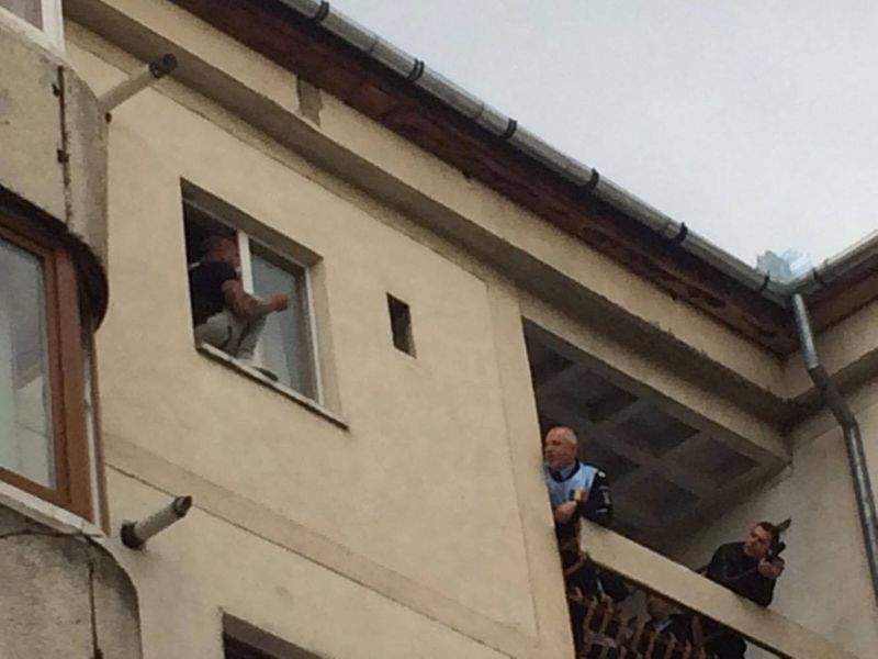 A amenintat ca se arunca de la geam