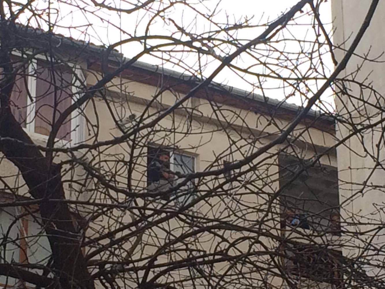 Mai bine de 6 ore au incercat pompierii, politistii si o echipa de negociatori profesionisti sa-l dea jos. Au vorbit cu el de la un balcon alaturat, timp in care barbatul s-a ridicat in picioare, pe marginea pervazului.