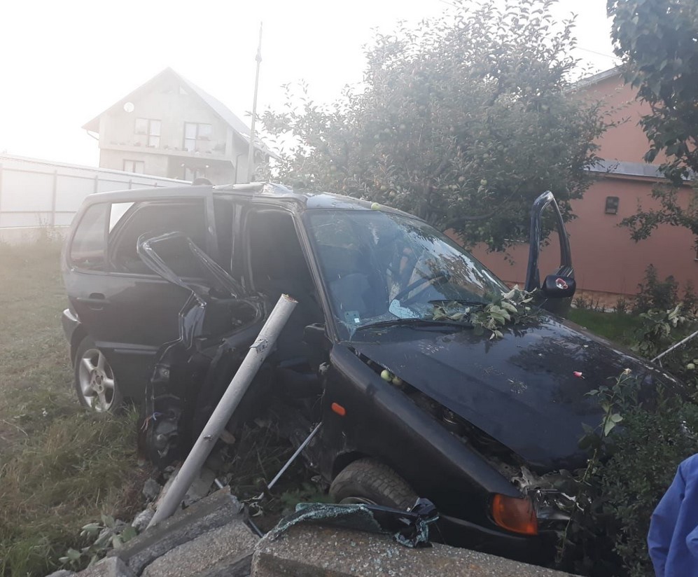 Un tanar, fara permis si baut, a intrat cu masina intr-un gard. Soferul e in coma, iar alti doi oameni sunt in stare grava la spital