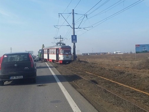 Un tramvai interurban, care circula intre municipul Arad si comuna Ghioroc, a deraiat, sambata, chiar la iesirea din Arad.