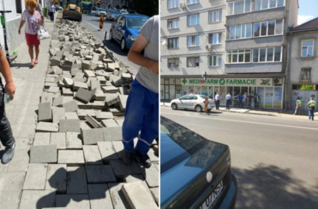 În urmă cu trei săptămâni, angajații unei firme s-au apucat să decoperteze un trotuar din Brașov și l-au lăsat așa. Constructorul a aflat chiar în timpul lucrărilor că are nevoie de pavele noi, așa că acum încearcă să le cumpere. În tot acest timp, oamenii fac adevărate exerciţii de echilibristică pe trotuarul acoperit cu pietriș.
