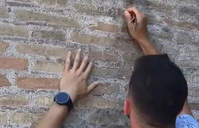 Un turist a provocat revolta oamenilor după ce și-a scrijelit numele lui și al prieenei sale pe Colosseum. El a fost indentificat. În timp ce bărbatul vandaliza zidul, prietena lui îl filma.
