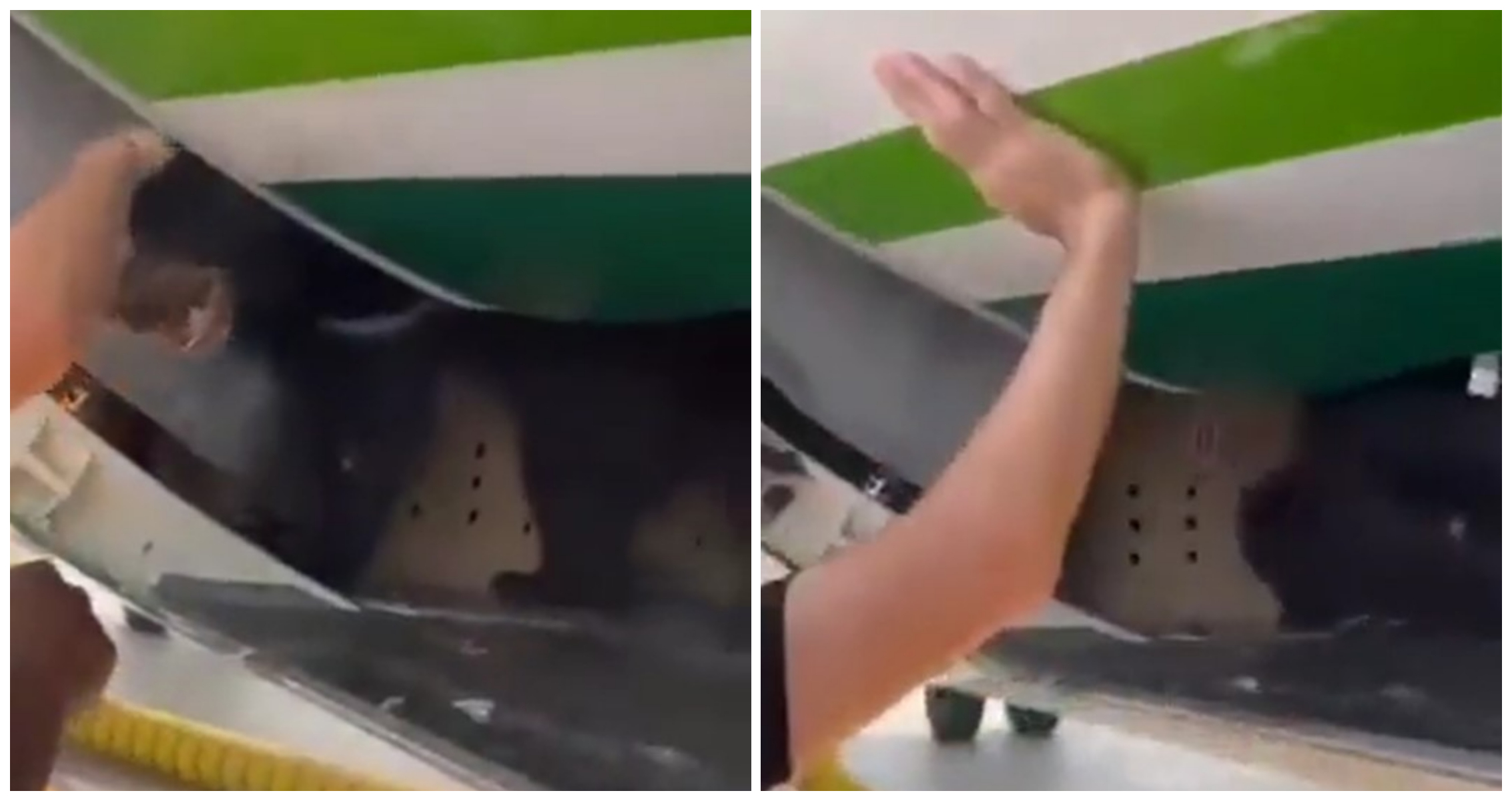 Un clip video care circulă pe rețelele de socializare arată căpitanul avionului cerându-și scuze pasagerilor pentru întârzierea decolării de vineri din cauza scăpării ursului din cușca sa din cala de transport.