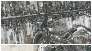 Experții care au analizat imaginile din satelit spun că unitățile blindate au fost manevrate prin localitățile din jur, aproape de aeroportul Antonov, la nord-vest de Kiev.