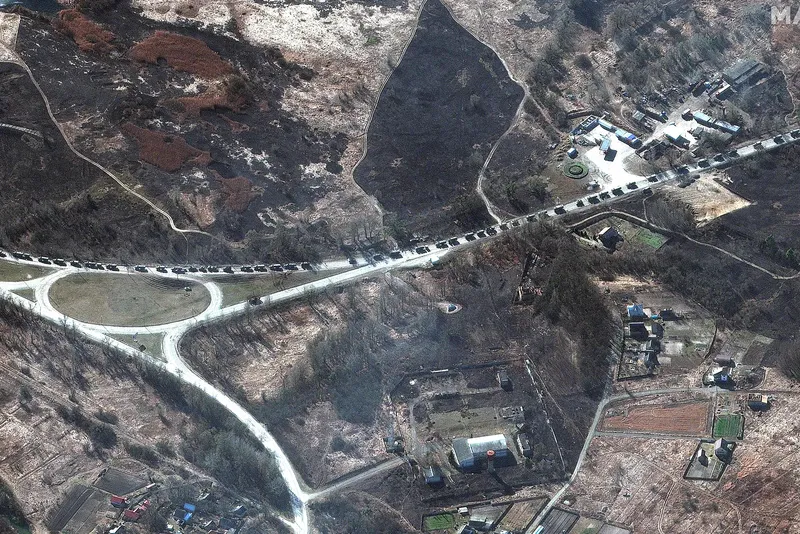 Firma care a prezentat imaginile din satelit, Maxar Technologies, a declarat că fotografiile realizate joi arată că întreaga coloană de 64 km de vehicule blindate, tancuri și artilerie s-a disipat și a fost redistribuită, informează Al Jazeera.