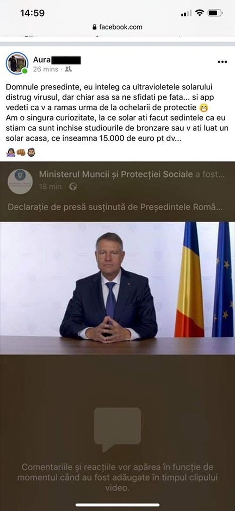 Consilierul parlamenar Cristian Vasilcoiu a citat pe pagina lui de socializare postarea unei femei de afaceri din Constanța, proprietar al unui solar, care se întreabă dacă nu cumva președintele și-a luat solar acasă. ”Domnul președinte, eu înțeleg că ultravioletele solarului distrug virusul, dar chiar ne sfidați pe față... și apropo, vedeți că v-a rams urma de la ochelarii de protecție. Am o singură curiozitate, la ce solar ați făcut ședințele că eu știam că sunt închise studiourile de bronzare, sau v-ați luat solar acasă, ce înseamnă 15.000
