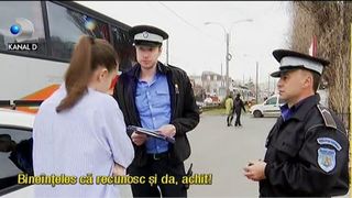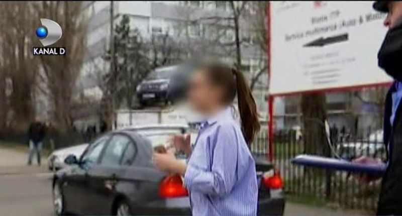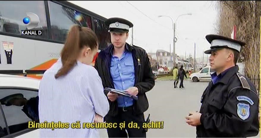 Domnisoara se urca in masina pe partea pasagerului si cu o miscare rapida ajunge la volan. In sfarsit tramvaiul are cale libera. Totul spre deliciul spectatorilor. In final soferita si-a recunoscut vina si a semnat si procesul verbal de contraventie