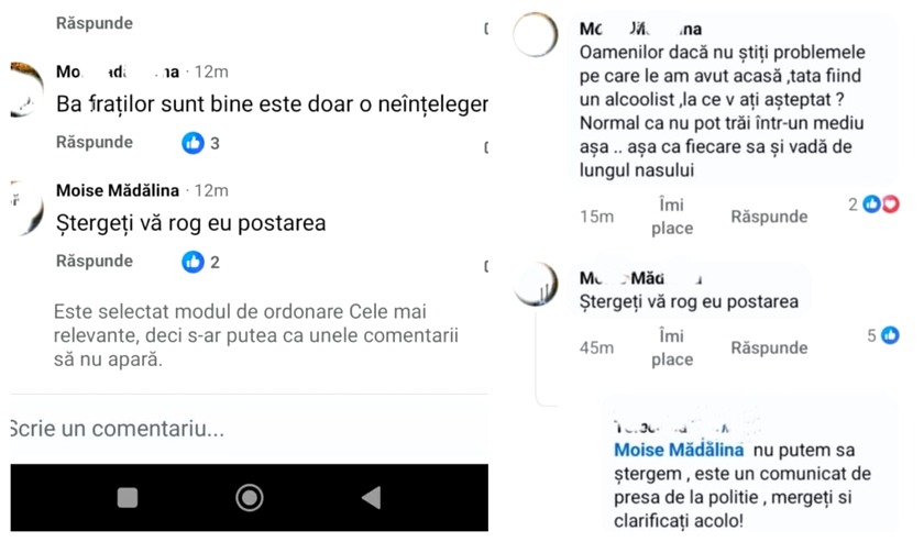 O femeie a confirmat parțial zvonurile din sat, într-un comentariu de pe Facebook. Femeia a spus că Mădălina este bine și se află într-o relație cu fostul ei bărbat.