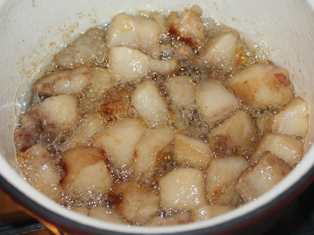 Se toacă apoi la cuțit sau la mașină și se pun la topit într-o cratiță emailată sau într-un tuci de fontă.