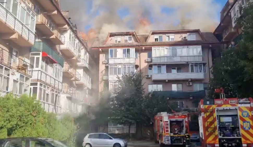 3 din 3 | Flăcările s-au extins de la mansardă și la blocul vecin
