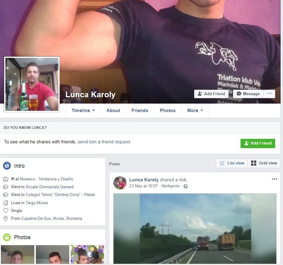 Martea trecuta, un teribil accident rutier a curmat viata a 9 romani pe o sosea din Ungaria, soferul Petru Zalar intrand cu microbuzul intr-un tir care venea pe contrasens pe motiv ca era prea ocupat cu live-ul pe care il facea pe Facebook. Dupa tragedie, pe contul de Facebook al uneia dintre victime, Lunca Karoly (21 de ani), din satul Capalna, au aparut inregistrari cu filmarea dramei, postate aparent chiar de tanarul care-si pierduse viata.