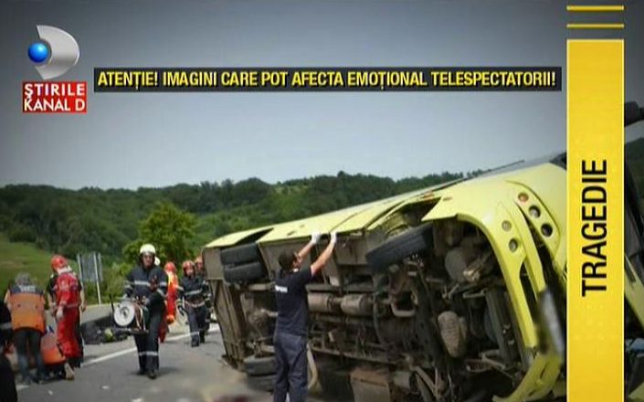 Dezastru pe o şosea din judetul Brasov, unde un autocar plin cu elevi s-a lovit de un parapet şi-apoi s-a răsturnat. Patru oameni au murit, între care şi un băiat de 19 ani, care nu ar fi trebuit să fie în maşina morţii. Cu toţii erau tineri talentaţi, care urmau să participe la Festivalul Internaţional de Folclor. Vă avertizăm că urmeaza imagini şi informaţii cu un puternic impact emoţional. ##VIDEO7097##