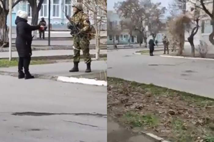 O filmare șocantă postată pe Twitter arată curajul unei ucrainence care i-a făcut o urare specială soldaților ruși, veniți să-i atace țara unde aceasta a născut, unde a copilărit și unde vrea să moară, dar nu în plin război.