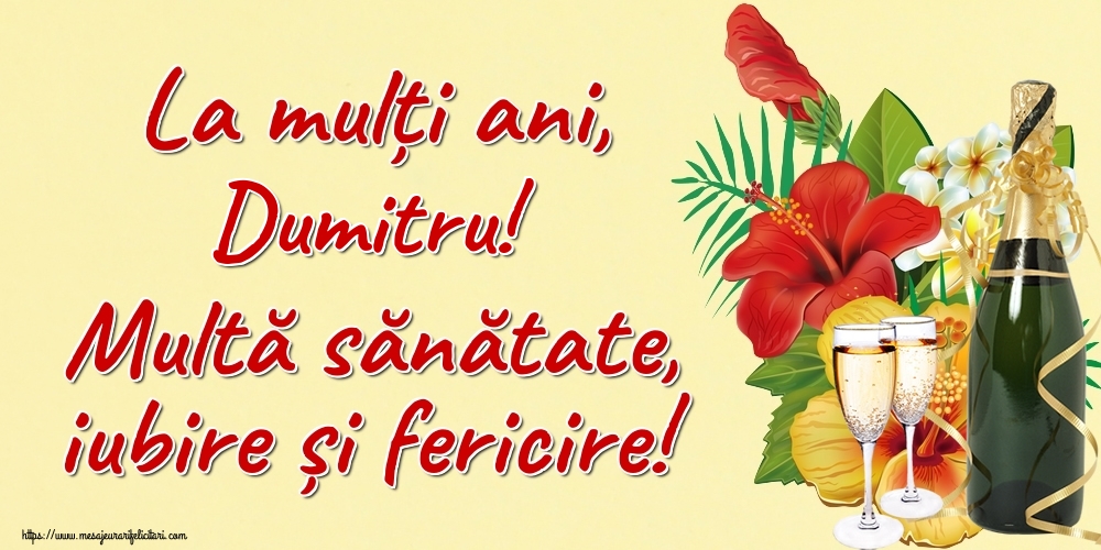 „Îți urez ca ziua numelui să îți aducă o rază de soare, să ai inima plină de speranță iar anii ce vin să îți aducă numai împliniri și bucurii. La mulți ani Dumitru!”