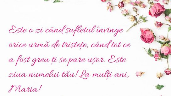 „Este o zi când sufletul învinge orice urma de tristețe, când tot ce a fost greu ti se pare ușor. Este ziua numelui tău! La Mulți Ani, Maria!”