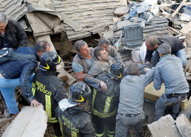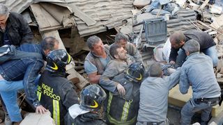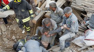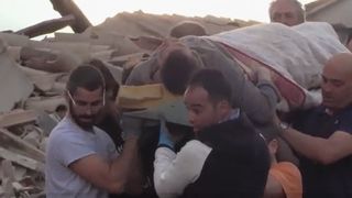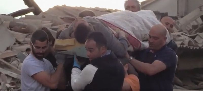 1 din 4 | Urlete de durere si disperare. Momentul dramatic in care un barbat e scos de sub cladirile daramate de cutremurul din Italia