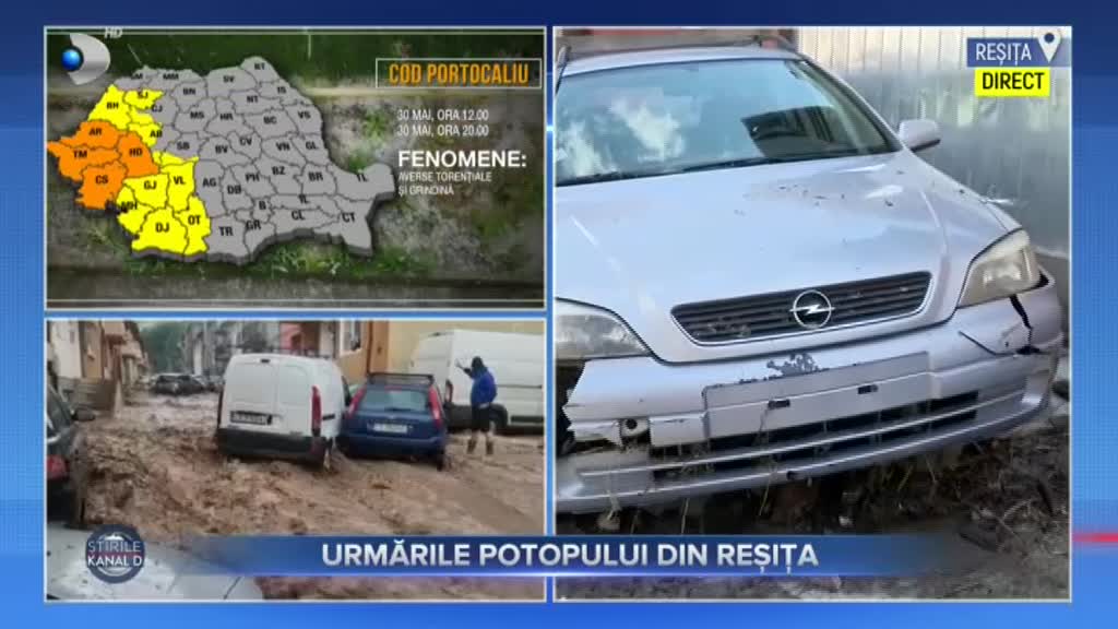 Stirea "Urmările potopului din Reșița" difuzata in cadrul grupajului informativ Știrile KANAL D din 30 May 2023.